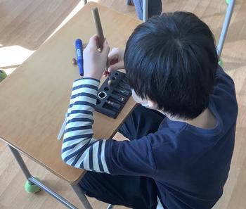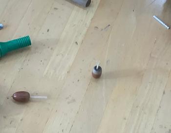 2、3時間目、図工で、どんぐりごまやヤジロベエを作りました。