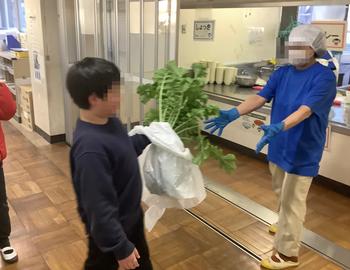 調理員さんや栄養士さんに、『明日のなますに入れてください。お願いします』とあいさつしに行きました。