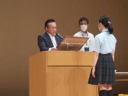 終業式では藤本貴也校長より講話がありました。人や世の中との関わりの大切さについて、始業式や入学式でお話をされた内容に触れ、1学期を人との関係性から振り返るようお話がありました。気遣いや思いやりを表現する上で「挨拶」の大切さについて、社会との関わりの具体的なものとして通学時、公共の場でのマナーの在り方をあげて、自ら身につけた力を自己満足で終わらせず、還元するべき「他者」や「社会」の存在に目を向けるよう、お話がありました。