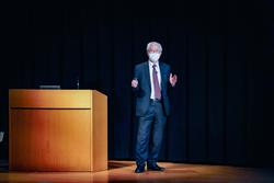 今年度1学期に行われた浅島サロンにてお話しいただいた「自分の夢や目標を立てて、それを紙に書いて育てていますか」という問いかけからご講演が始まりました。講義の中では、アクチビンという受精卵の成長を促進する物質の存在を確認するまでの様々なエピソードの他、先制医療や最先端医薬にも触れてお話しいただきました。