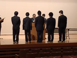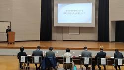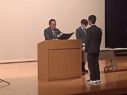 修了式の前には表彰式が行われましたが、壇上で表彰を受けた生徒に対する全校生徒、職員からの温かい拍手が印象的でした。表彰の冒頭には京三製作所様から本校に寄贈していただいている3Dプリンタを利用した校内コンテストの表彰があり、京三製作所様から3名の方がプレゼンターとして来校してくださるとともに、代表して島添様による全校生徒への講話もいただきました。