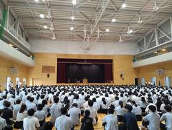 修了式は校長先生による年度の締めくくりとなる講話、生活保健指導部主任による講話、校歌斉唱と続きました。校歌斉唱では大きな歌声が響きわたり、やはり全校で一堂に会することの良さ、全校生徒の一体感を感じるものとなりました。