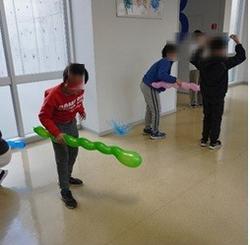 最後に、参加者全員で、風船とスズランテープを使って「ふわふわ静電気レース」を実施しました。思い通りに“ふわふわ”しないスズランテープに苦戦しながらも、どうしたらうまくいくのかを考えたり工夫したりしながらレースを楽しみました。