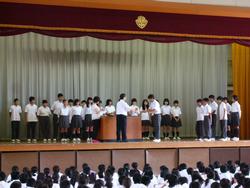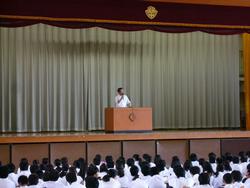 始業式では校長先生から、戦後70年の節目であり、戦争を知らない世代として、知ることの大切さをお話いただきました。また、2学期にある体育祭、文化祭に向けて、目標に向かって過ごすよう激励をいただきました。