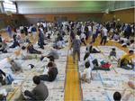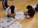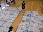 | 体育館に自治会別に集合して | 新聞紙四枚の大きさを確認して | フロアに実際に寝てみました |
