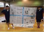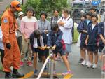 錦台中学校地域防災拠点は、神之木台、ラ・クラッセ西寺尾、西寺尾第三、神之木台東部、子安台の五つの自治会が協力して運営をしていきます。運営委員長をはじめとして18名の運営委員と松見消防出張所や神奈川区役所の方々、教職員が連携していきます。当日の防災訓練では250名を超える地域の方々が参加をしました。錦台中学校の有志生徒(バドミントン部、柔道部)も50名ほど参加をして、地域の力として活動しました。体育館フロアへ実際に新聞紙をひいて避難場所を体感する訓練では、率先してスペース確保のための新聞引きをお手伝いしました。また、消火放水訓練では、消火栓に立てたスタンドパイプのバルブをひねったり、放水を体験したりして消防隊のお手伝いをしました。訓練の最後には、食糧物資班の方々が炊き出してくださったカレーライスとすいとん汁をいただきました。とても美味しかったです。