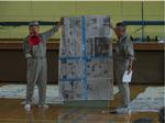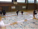 今年度の訓練は、体育館が避難所として開設された場合、一人の避難者に与えられるスペースは新聞紙四枚分程度といわれていることから、そのスペースを体験してみよう!というのが目的のひとつでした。体育祭の前日、有志生徒(バドミントン部、バスケット部)が地域防災拠点訓練の準備をしてくれました。