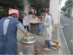 | 消火栓にスタンドパイプ式消火器具を設置して放水消火訓練 | 炊き出しでカレーをいただきました | |