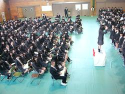 今日は午後から3年生を送る会がありました。校長先生からお話をいただいた後、1年生と2年生が感謝の気持ちを込めた合唱を贈り、各部活の代表から3年生にメッセージをおくりました。後輩たちの気持ちに、3年生も歌でこたえました。卒業式前の学校全体行事としてはこれが最後となります。残りの一週間を、在校生も卒業生も大切に過ごしてくれることと思います。