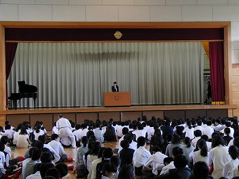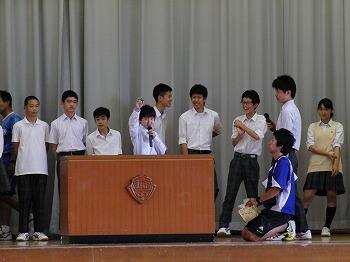 今日の生徒朝会では、9月24日(土)に予定されている体育祭の色決定式を行いました。袋の中から出てくるボールの色にみんな注目!