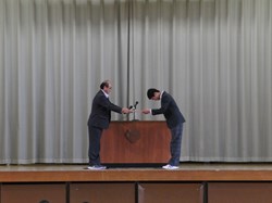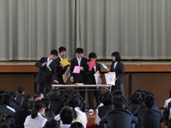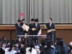 朝会の前に、部活動で頑張った生徒の表彰がありました。
