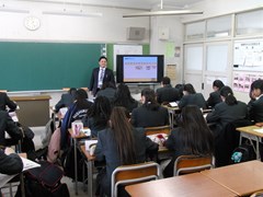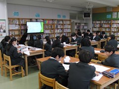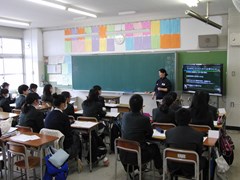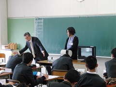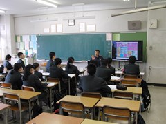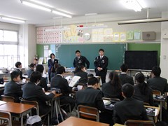 1年生では本校のキャリア教育の一環として、いろいろな職業の方のお話を伺う機会を設けています。今回は6グループに分かれて、サービス、製造、公務員と様々なお話をいただくことができました。みんな真剣に話を聴き、それぞれの仕事についての心構えや大変さを知ることができました。講師の方からも、あいさつがシッカリしていてすごいですね、と褒めていただきました。