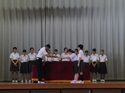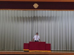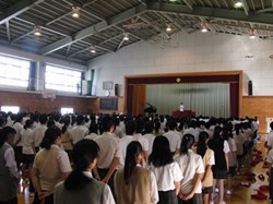 夏休みが終わり、始業式で2学期が始まります。終業式は暑さ対策のためテレビ放送だったのですが、今日は夏休み中に頑張った生徒の表彰と、来たる周年行事に向けての準備のため酷暑の体育館に全校生徒が集まりました。