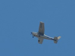 航空写真の撮影もしました。飛行機が来ますよ~、と言っているところでヘリが来たり、カラスが飛んでいたりして惑わされながら、撮影用のプロペラ機が上空に到着しました。