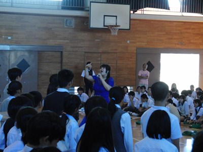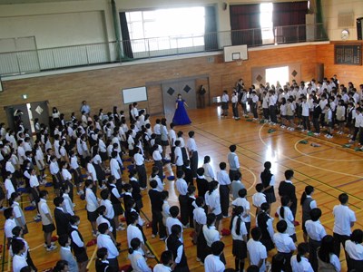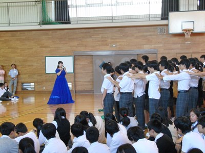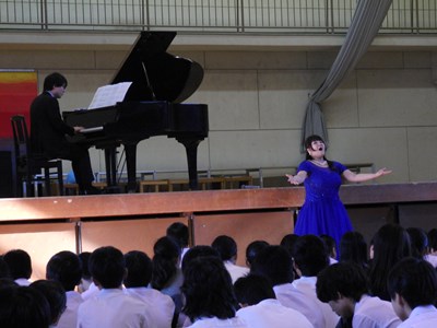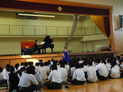 モーツァルトの魔笛から「夜の女王のアリア」を披露していただきました。説明の際「超絶技巧」と仰っていた高音の部分では、あまりの超絶っぷりに生徒が思わずガヤガヤしていましたが、後半にはすっかり歌声に圧倒されて聴きほれていました。