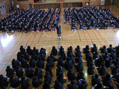 錦台中学校に入学してきた1年生を迎える会です。吹奏楽部の演奏、生徒会からのプレゼント品贈呈とあいさつがありました。