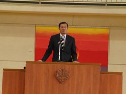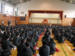 3学期の始業式です。冬休み中の部活動の表彰も併せて行われました。校長先生は冬休み中に見た映画のお話をされました。暖冬とはいえ寒い体育館にもかかわらず、集中して話が聞けていました。