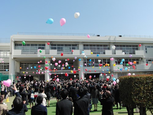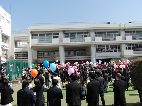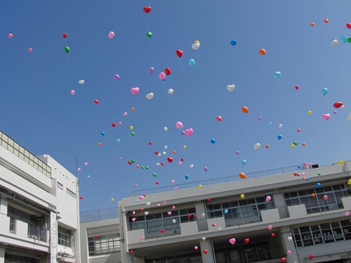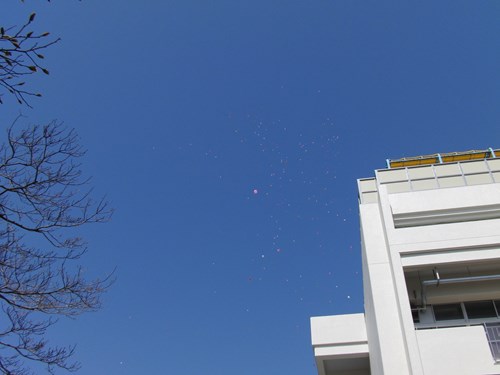 また、卒業式後にはPTAのご厚意でバルーンリリースが行われました。それぞれの気持ちを乗せた風船がどんどん小さくなり、青い空に消えていくのを見届けました。