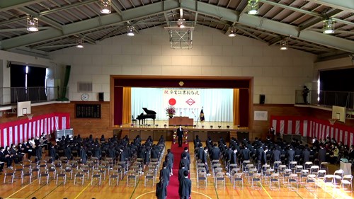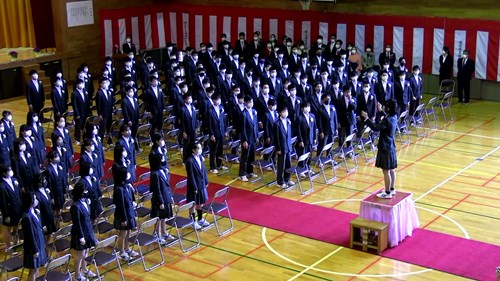 緊急事態宣言下ではありますが、列席者は全員マスク着用、常時換気の下で生徒と保護者1名のみ、来賓もPTA会長だけで式を行いました。