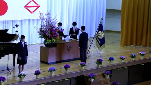 在校生からのことばは、ビデオ映像を事前集録したものを視聴しました。
