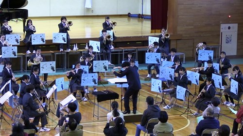 1年生もここまで発表の機会がなかったため、全員で松本倫士作曲「パシフィック序曲」、コンクールメンバーによるロジャー・シシー作曲『組曲「虫」より 1前奏曲 4クロゴケグモ 6軍隊アリ』、最後に全員でポップスナンバーとして宮沢和史作曲「風になりたい」を演奏しました。