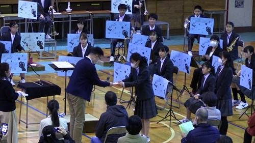 本校吹奏楽部が横浜市吹奏楽コンクール中学校B部門金賞、神奈川県吹奏楽コンクール中学校B部門金賞をいただき、東関東吹奏楽コンクールに出場し銀賞をいただいたことを保護者・地域の皆様にご報告と、お礼の演奏をすべくミニコンサートが行われました。