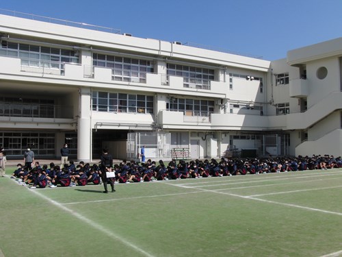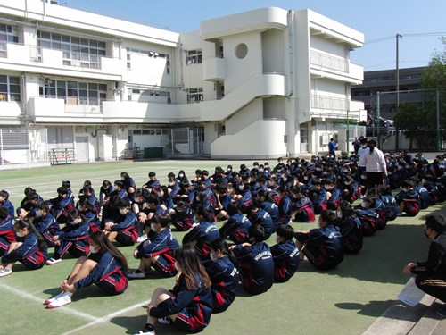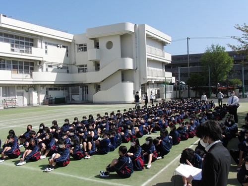 新しい学年、新しい教室。ということで、地震等の災害に備えて避難経路と避難時の約束を確認する避難訓練が行われました。密を避けるため学年ごとに分散して一次避難場所の上校庭に移動しました。私語もほとんどなく、整然と行動できました。最後に校長先生から「先月16日に比較的大きな地震があったのですが、記憶が薄れていますよね」と、日頃からの意識の持ち方のお話をいただきました。