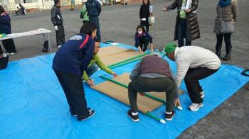 実際の訓練では、参加者の方々に実演して見せるなど訓練に貢献しました。防災拠点の皆さんも、中学生の活躍を大変喜ばれていました。