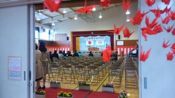 ▲素敵な折鶴の飾りで卒業生の門出を祝っていました!