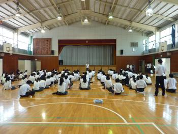 明後日から、三年生は、二泊三日で京都・奈良へ修学旅行へ出かけてきます。今日は、体育館にて「結団式」を行いました。暑い中でしたが、修学旅行を前に、笑顔があふれていました。すす中生として自覚をもち、規範意識を大切にしながら、楽しい修学旅行になるといいですね。三年生の皆さん、行ってらっしゃい!