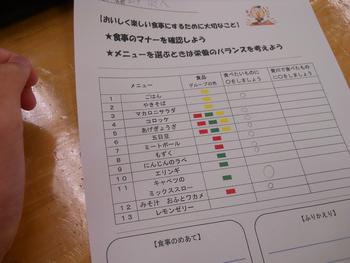 5・6組は来週、合同宿泊学習が予定されています。バイキング形式の食事では、どんなメニューを選ぶと栄養バランスがよいのかを考えました。