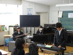 曲は、『イマジン』です。どこか懐かしさを覚える曲ですが、歌詞の意味も考えながら、どのグループも最後まで演奏することができました。音楽科教諭も生徒の頑張りを喜んでいました。